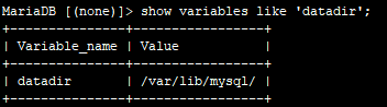 (show variables like 'datadir';)