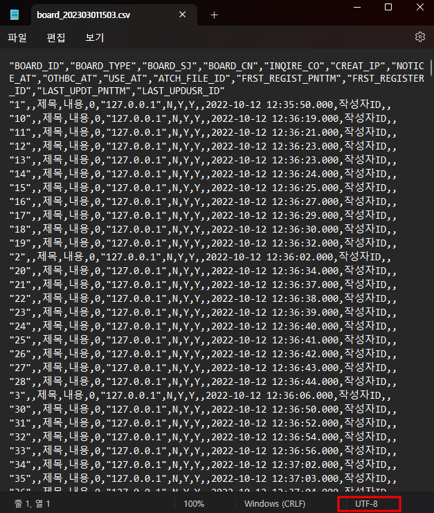 3. 파일 확인을 해보면 아래와 같이 한글이 정상적으로 잘 보인다.