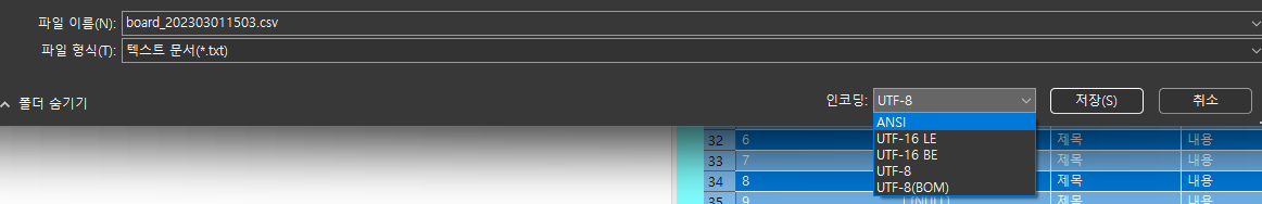 DBeaver를 이용하다가 보면 엑셀 등으로 보기 위해서 데이터를 추출해야 되는 일이 발생하는데.. csv로 추출 후 확인해 보면 한글이 깨져있다... 젠장..
