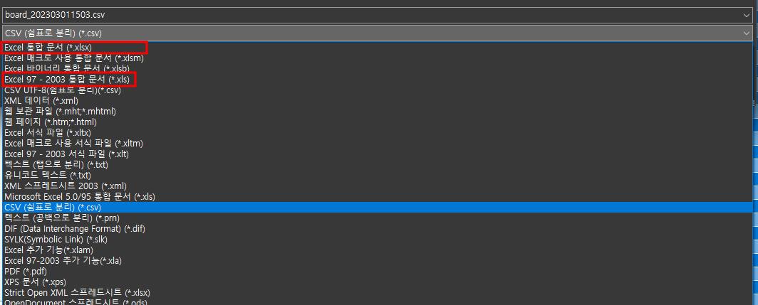 4. 윗 꼰대들에게 csv 파일로 전달해주면 욕 처먹기 때문에 엑셀파일로 친절히 변환 시켜 줘야 되니 csv파일을 엑셀로 변환시켜줘야된다.