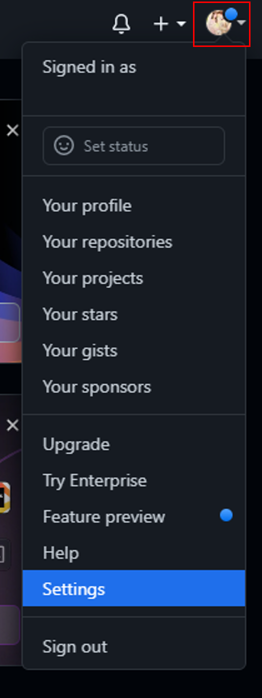 1. 오른쪽 상단 프로필 선택 > Settings 이동