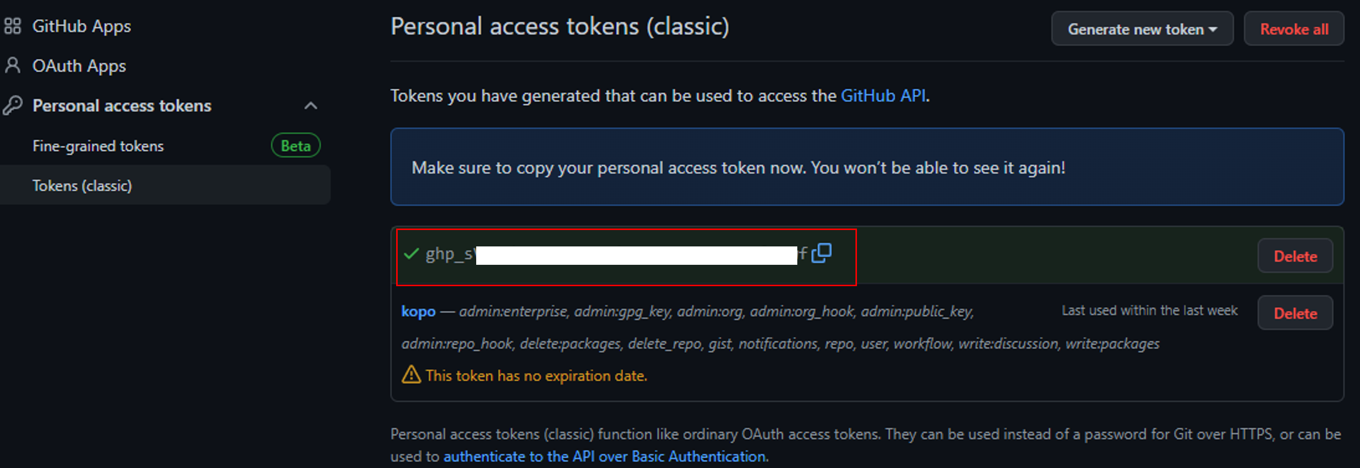 - GitHube를 회사가 아닌 집(본인PC)에서 사용하는 경우 No expiration을 추천