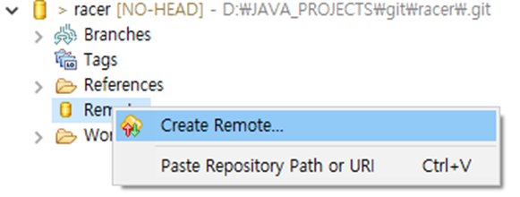 2. 프로젝트 > Remotes 마우스 오른쪽 클릭 후 Create Remote선택