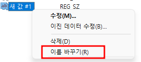 3. 오른쪽 창에서 마우스 오른쪽 클릭 > 새로 만들기(N) > 문자열 값(S) 선택